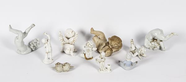 Lot of ten porcelain and ceramic figurines "Putti Games"