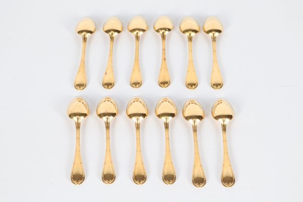 Lot of twelve coffee spoons in gold-plated and chiselled metal