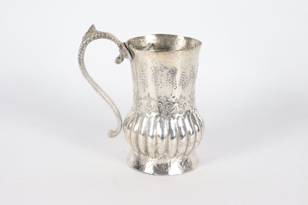 Low-grade Indian silver mug, chiseled and embossed with leaf and tree motifs, approx. 390 g