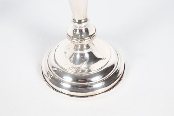 Pair of candlesticks in chiseled and embossed silver and worked crystal