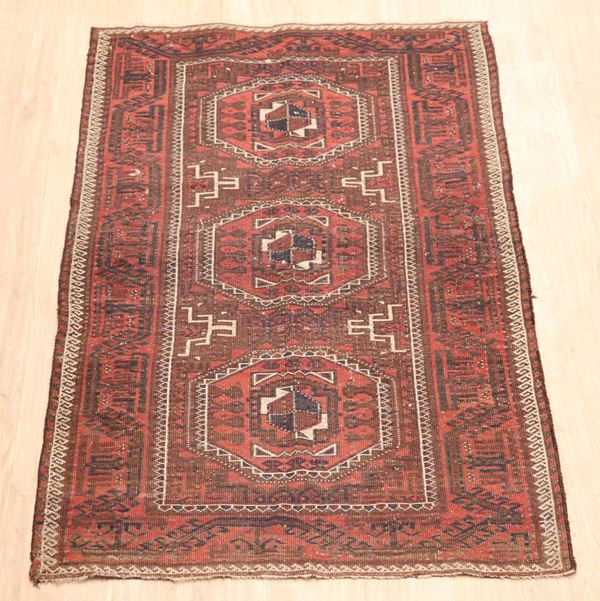 Persian Shirvan rug with geometric designs on red and white background