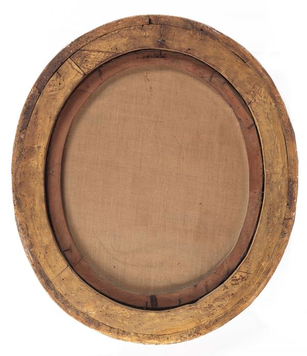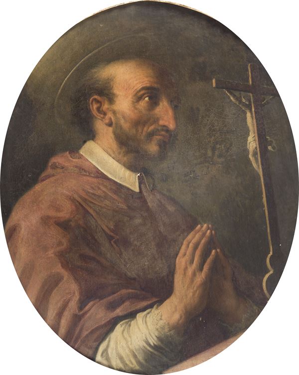 "Saint Borromeo with crucifix", valuable oval oil painting on canvas in an ancient gilded wooden frame