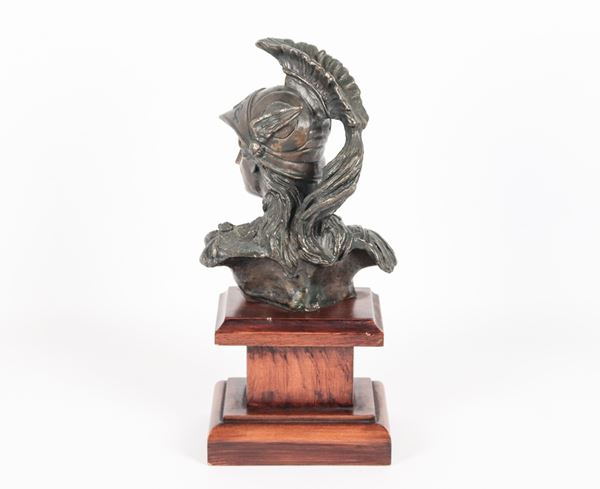 "Achille", small bronze bust supported by a quadrangular wooden base