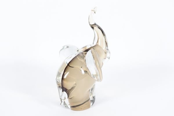 "Elefantino", small sculpture in transparent Murano blown glass signed Pino Signoretto (1944)