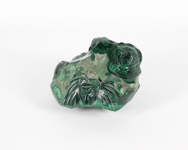 "Tiger Head", small oriental sculpture in malachite hard stone