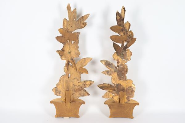 "Vases with flowers", pair of wall friezes in gilded and carved wood
