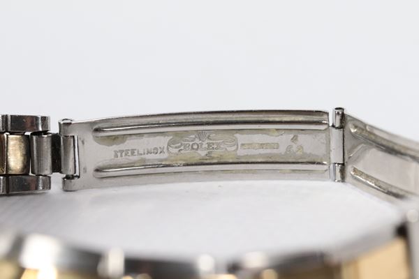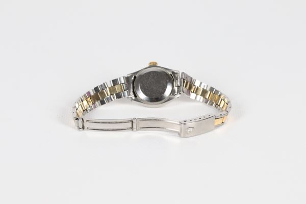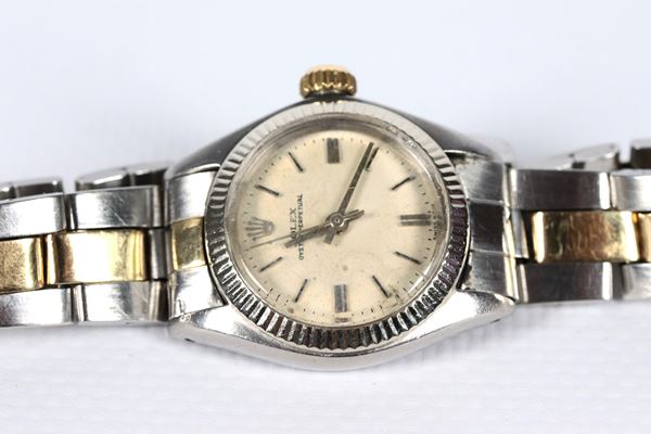Rolex Oyster Perpetual, vintage women's watch in 18kt yellow gold and steel, white dial with indexes, mechanical self-winding movement, [..]