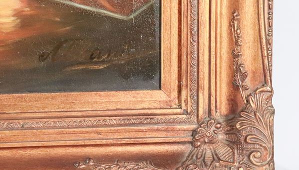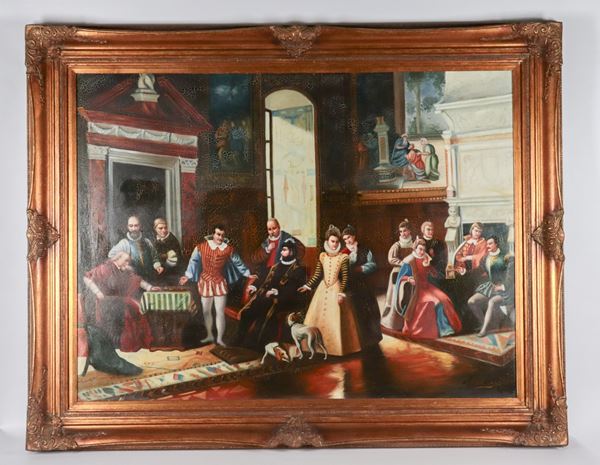 "Historical scene", oil painting on canvas in gilded wooden frame