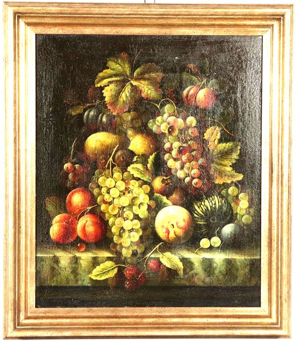 "Still Life of Fruit", oil painting on canvas in gilded wooden frame