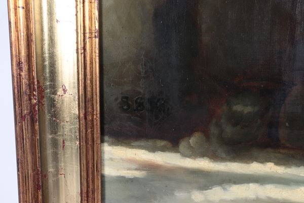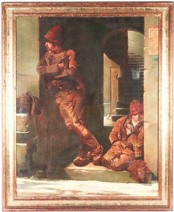Signed. "The Chimney Sweeps' Rest", oil painting on canvas in a gilded and patinated wooden frame