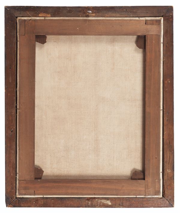 "Holy Family", oil painting on canvas in patinated wooden frame