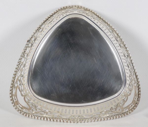 Small heart-shaped basket in silver, with perforated, chiseled and embossed edge, gr. 110