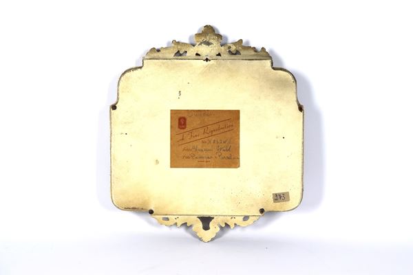Small rectangular shaped frame, gilded, carved and lacquered, inside a small print depicting "Still Life with Flowers"
