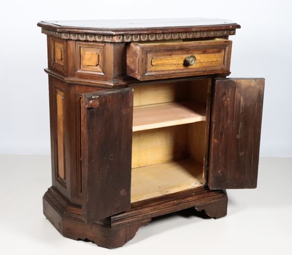 Umbrian sideboard in Louis XIV style in walnut, shaped with central drawer and two doors underneath