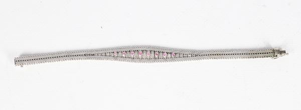 18kt white gold bracelet with small pink stones, gr. 33.5