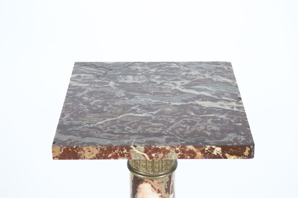 Ancient French column in brecciated and veined marble, gilded and chiseled bronze fittings