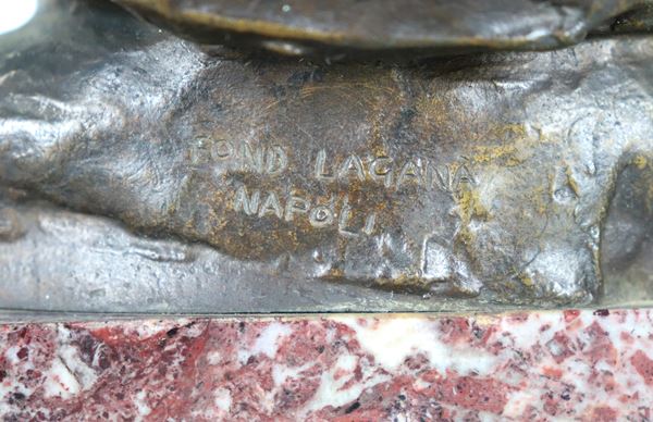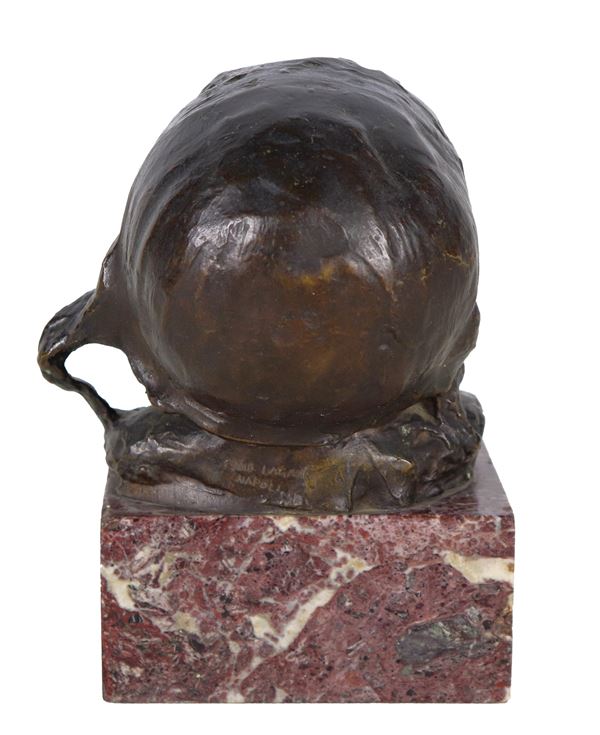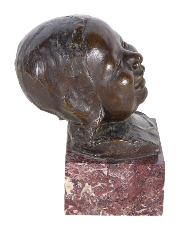 Signed. "Child's Smile", bronze bust, Fonderia Laganà Naples, supported by a brecciated marble base