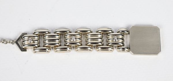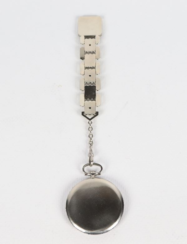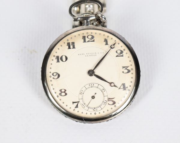 Haas Neveux & Gie - Geneve pocket watch, with 18kt white gold link chain and three small diamonds, case surrounded by small sapphires. Chain [..]