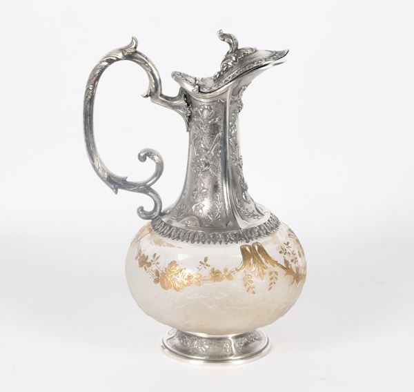 Jug in decorated crystal and silvered metal, embossed and chiselled with Louis XVI motifs