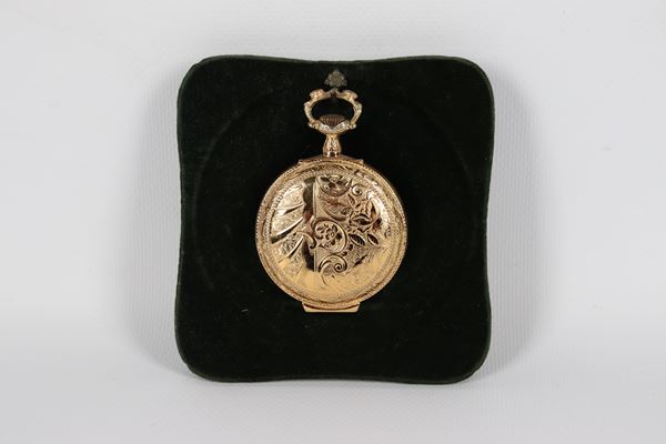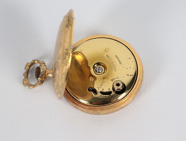 Kramer brand double case pocket watch, in gold-plated metal, embossed and chiseled, dial with Roman numerals, missing glass. Not working, to [..]
