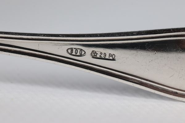 Lot of 23 small objects in chiseled and embossed silver: jug, two snuffboxes, strainers, cutlery etc., 680g