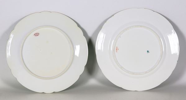 Lot of two antique wall plates in Paris porcelain and Copeland porcelain, decorated and multicoloured with floral scroll motifs and coat of [..]