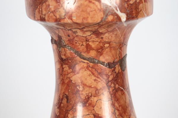 Marble column shaped table lamp. Defect on the stem