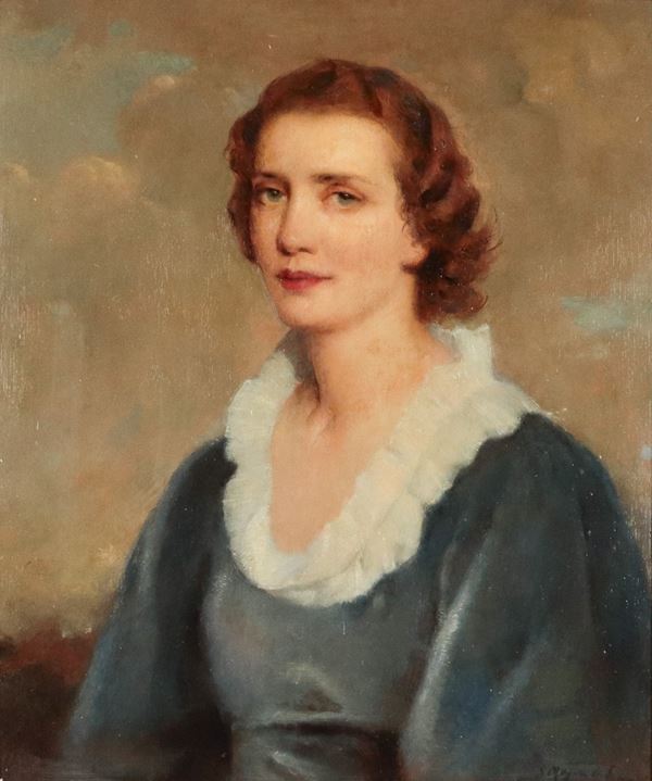 Signed. "Portrait of a young noblewoman", oil painting on plywood in a gilded and carved wooden frame