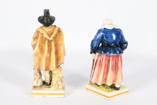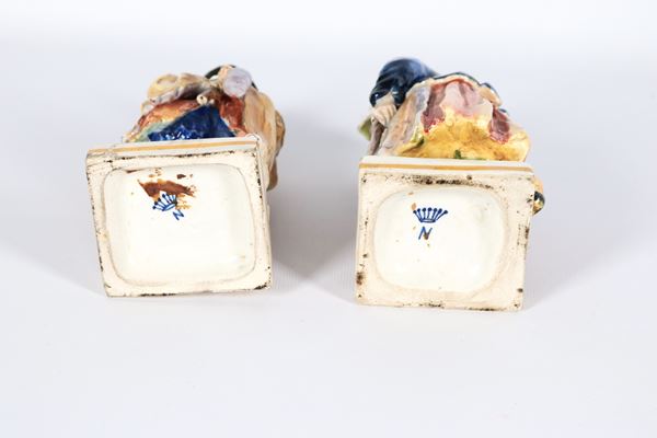 Pair of small sculptures "Beggars", in enameled and polychrome porcelain from Capodimonte. Defects and breakage at the base of a fi [..]