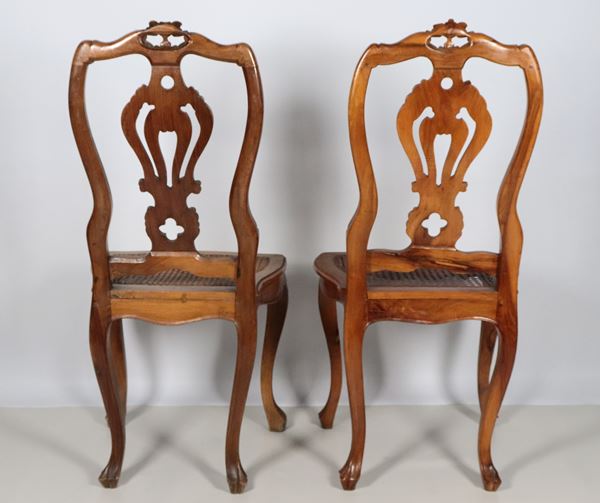 Pair of Venetian chairs in Louis XV style, in walnut with perforated backrests