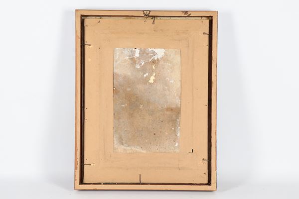 "San Pancrazio", ancient polychrome tile in Italian majolica, within a frame. Defects