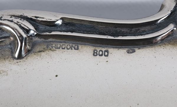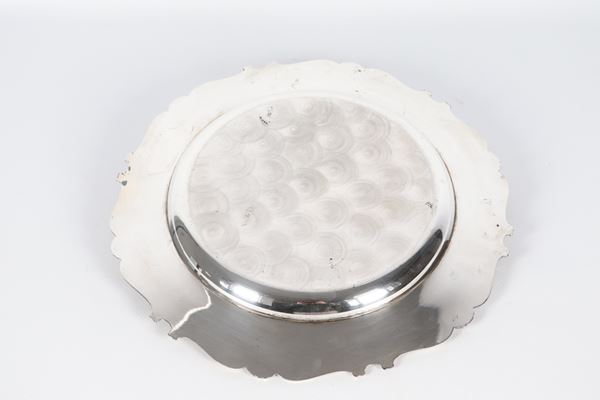 Round silver centrepiece with curved edge, chiseled and embossed with scroll and shell motifs, marked Frugoni, gr. 420