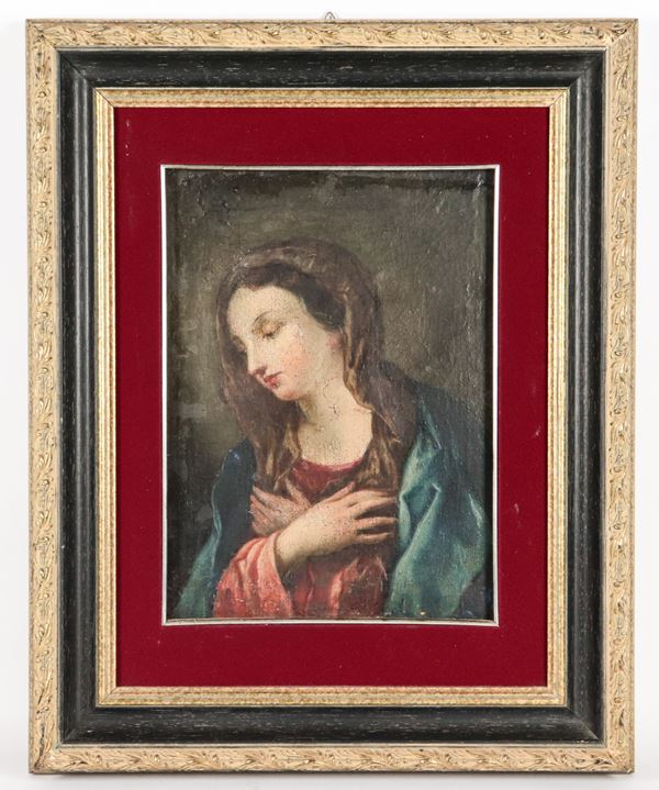 "Madonna", small oil painting on canvas in a gilded and ebonized frame