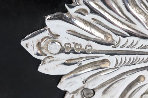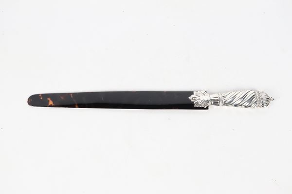 Antique large English paper knife, Queen Victoria period, with entirely chiselled and embossed silver handle. London 1867 stamps