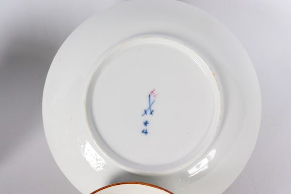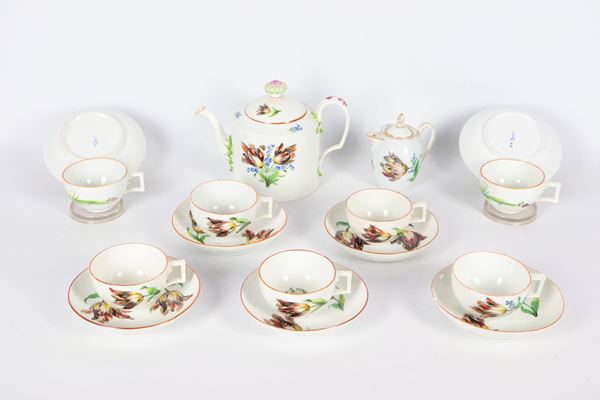 Antique Meissen porcelain lot, Marcolini Period, with polychrome decorations with flower motifs: coffee pot, milk jug and seven cups with saucers, [..]