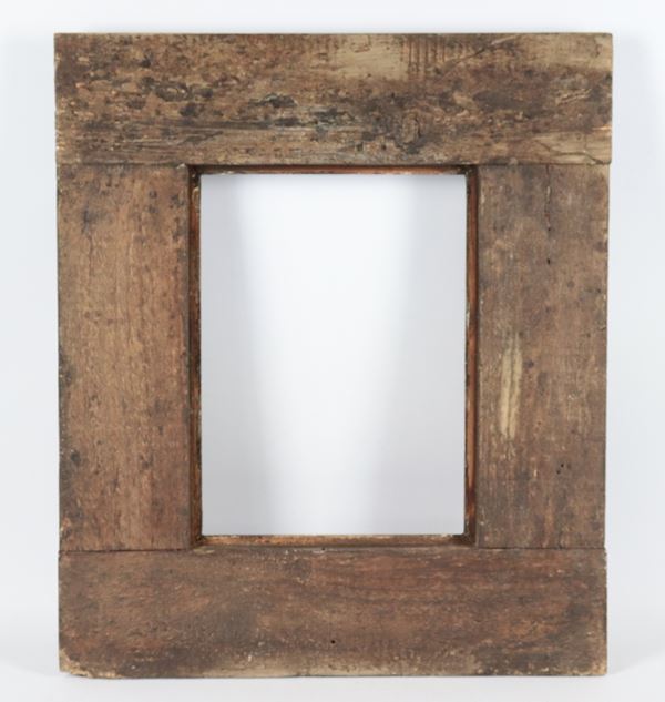 Antique patinated wooden frame with traces of gilding and carvings with palmette motifs