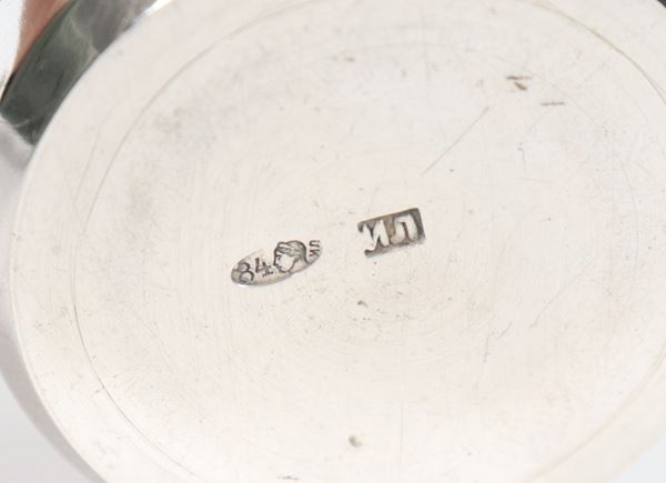 Antique Russian silver lot of two small glasses and two round salt shakers, gr. 174. Moscow stamps 1884