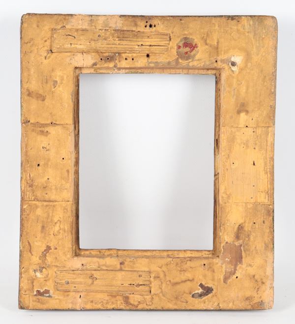 Antique small frame in gilded wood and carved with palmettes