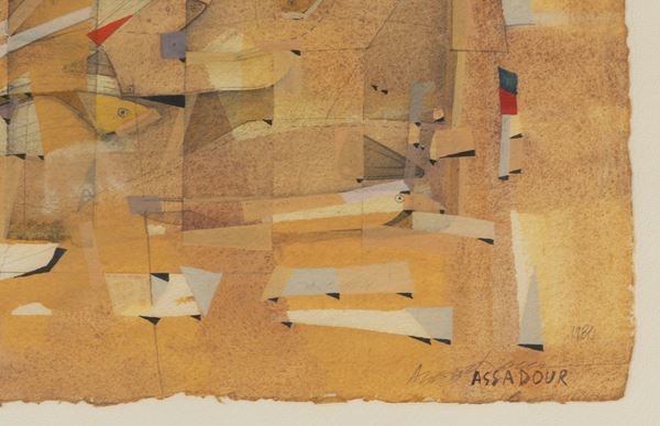 Signed and dated 1980. "Untitled", watercolor and tempera on paper, walnut frame