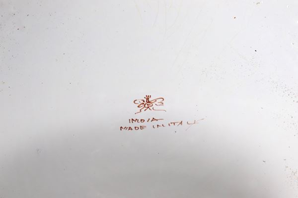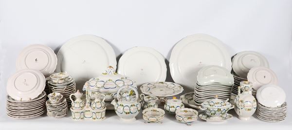 Cantagallo majolica dinner service - Florence, with polychrome decorations with floral garland motifs and interwoven blue cords, various chippings [..]
