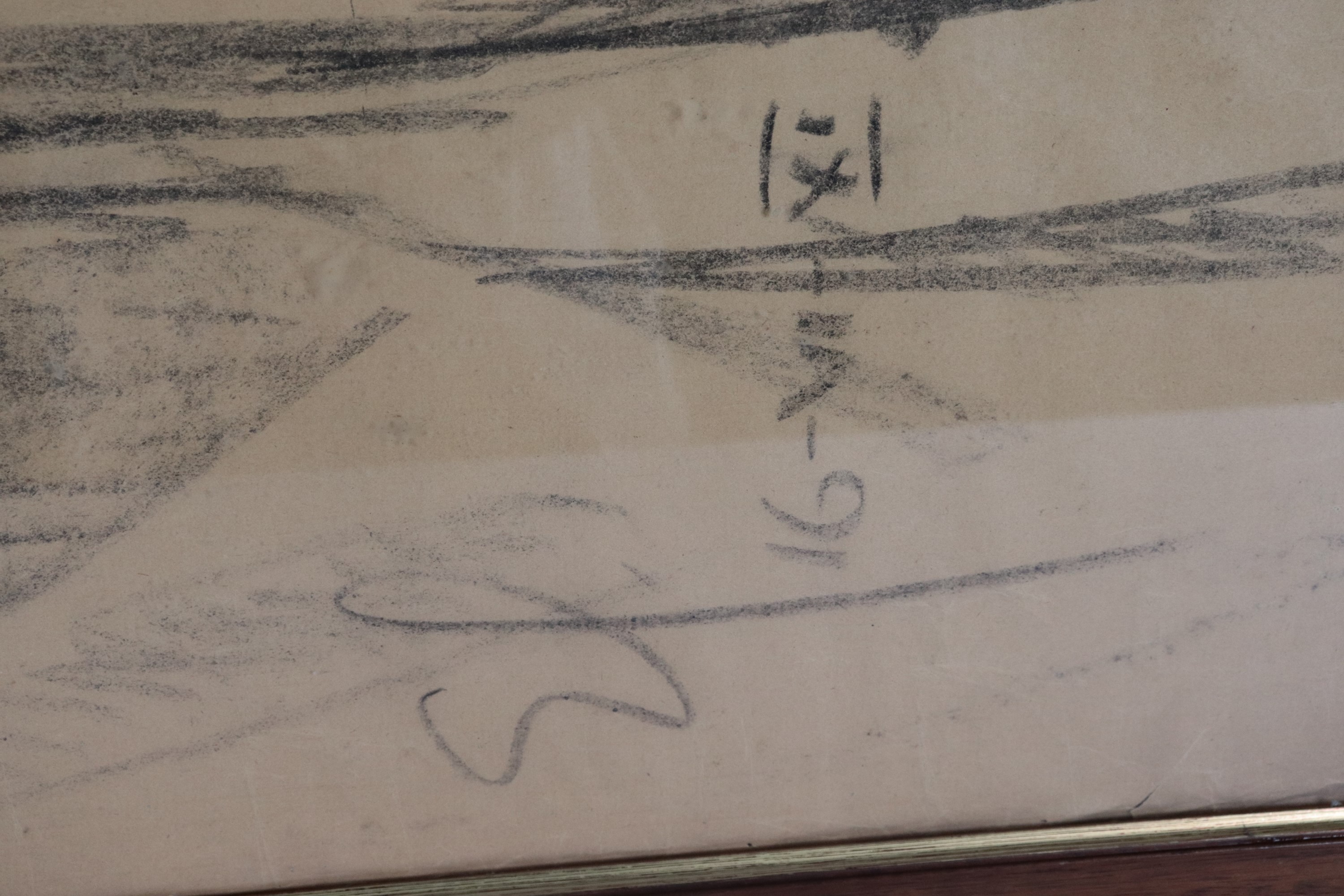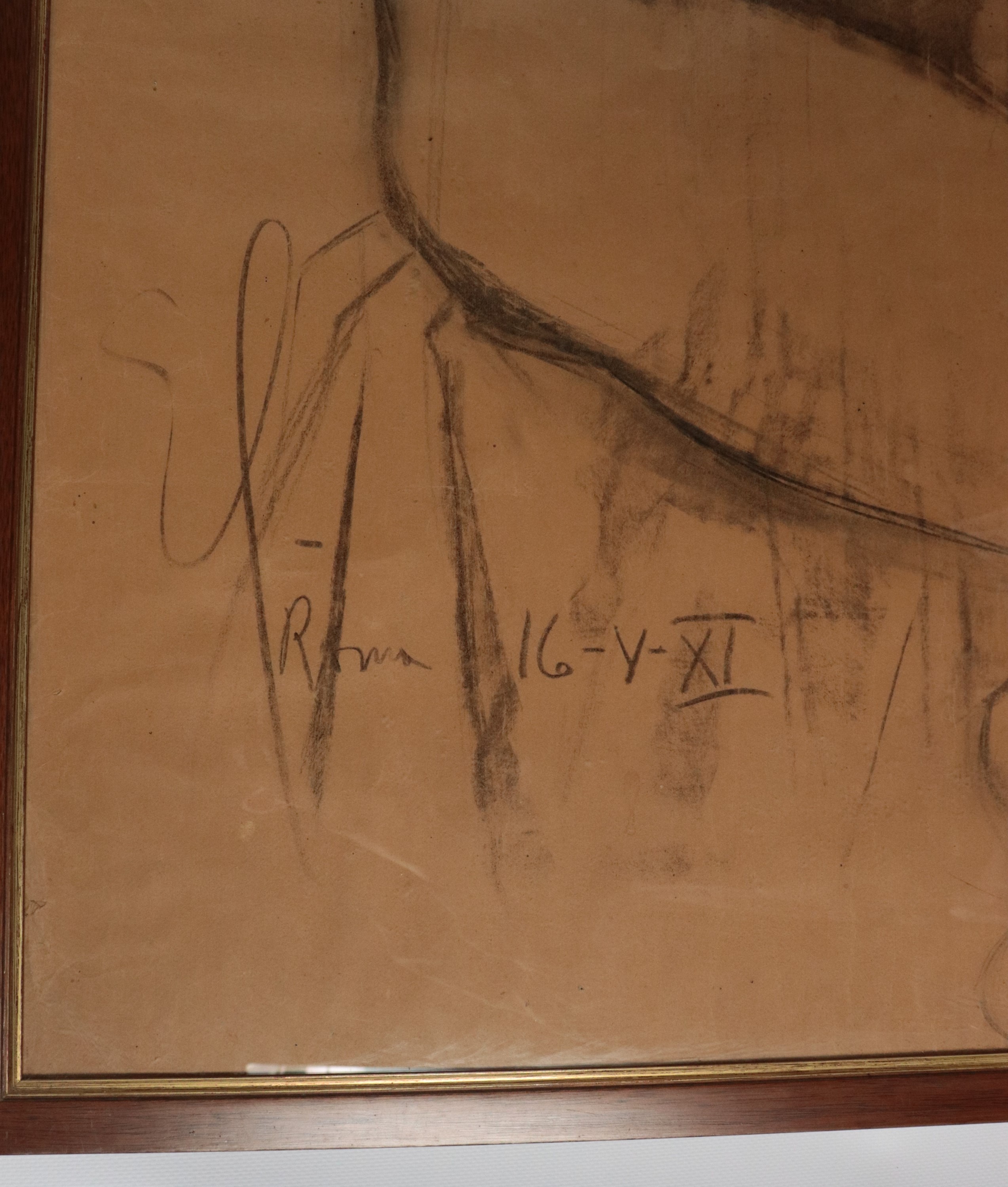 Signed. "Nudes of African Women", lot of four large charcoal and pencil drawings on paper, walnut frames