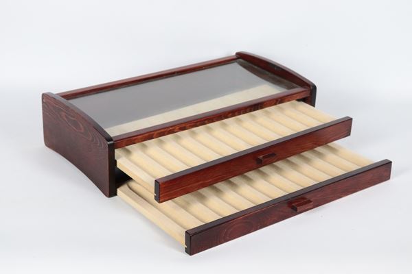 Cigar box in fruit wood and glass with two removable shelves