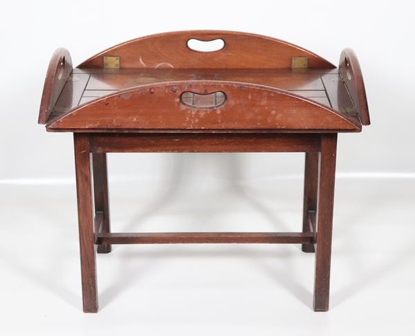 English Mahogany Picnic Table with Folding Corners and Four Legs