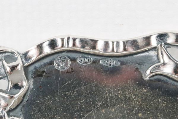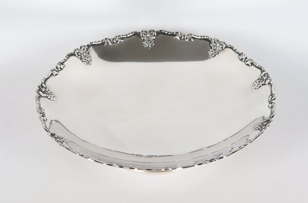 Fruit stand in silver, with chiselled and embossed edge with bow and flower motifs, gr. 420