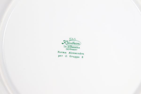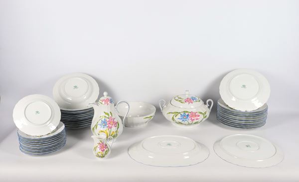 consisting of: 12 soup plates, 11 flat plates, 12 small plates, 1 soup bowl, 1 salad bowl, 1 oval serving plate, 1 round serving plate, 1 coffee pot and 1 milk jug.