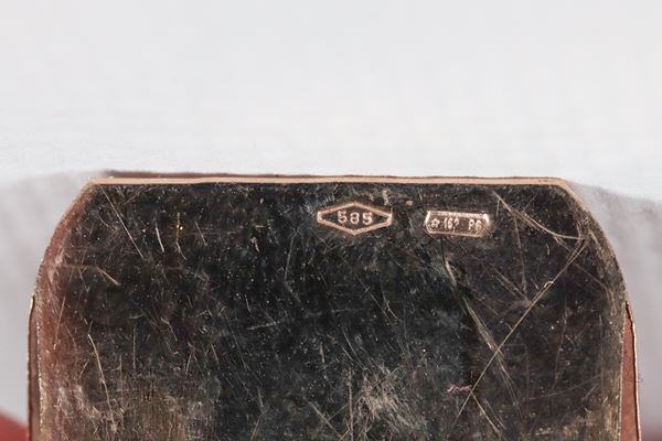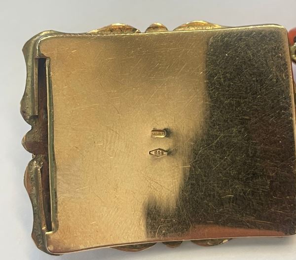 Mediterranean red coral necklace with four strands, with faceted barrels with graduated degrees and 14kt yellow gold clasp with central coral. [..]