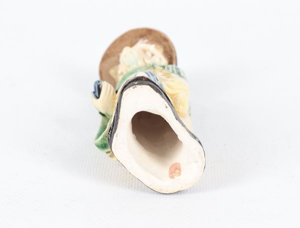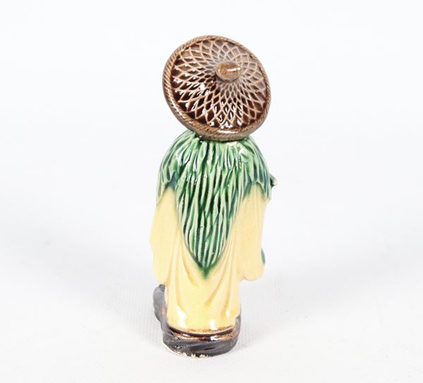 "Fisherman", Chinese figurine in porcelain and enamelled stoneware
