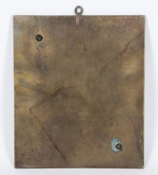 "Saints", small Russian plaque in silvered metal, embossed and chiseled. Early 19th century