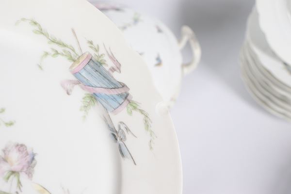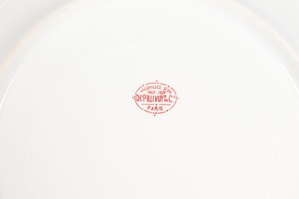 Remaining stock of French porcelain plates service CH.PILLIVUYT-Paris, with colourful decorations with floral interweaving motifs (20 pcs.)