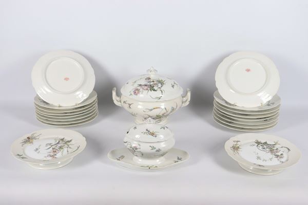 consisting of 1 soup bowl, 16 flat plates, 2 fruit stands and 1 gravy boat.